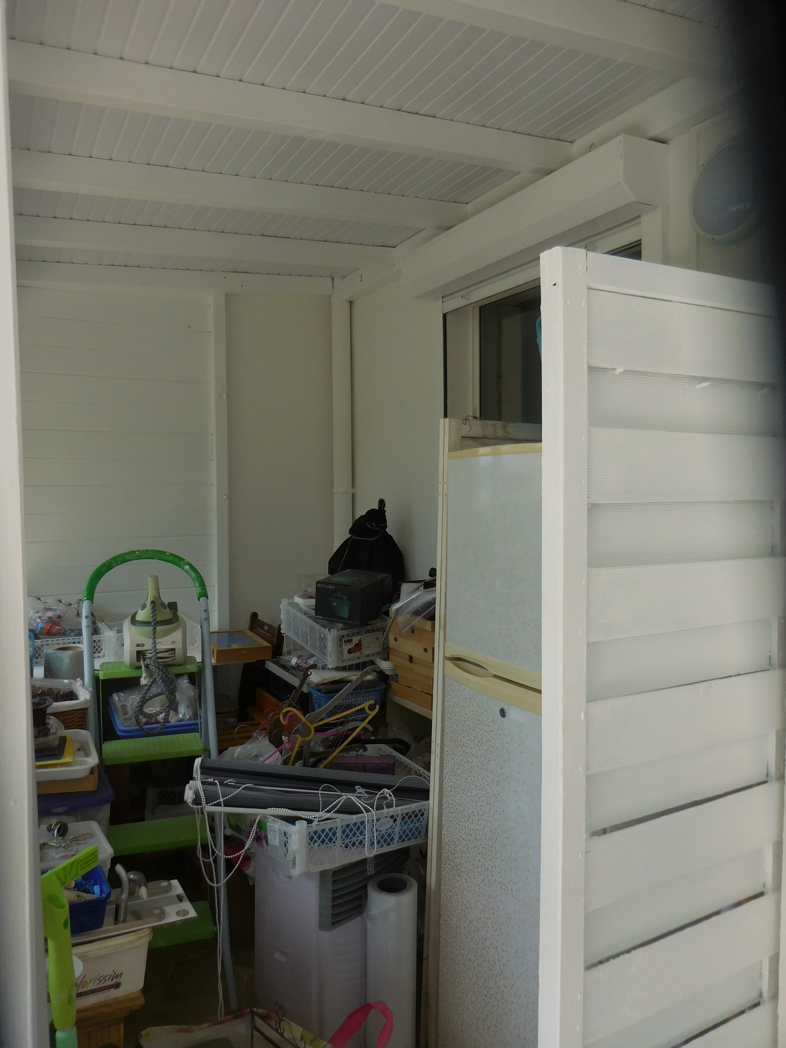 L’appartement comprend une chambre climatisée avec grand placard et salle d’eau attenante, un WC indépendant avec lave-mains, une cuisine aménagée et équipée d’une plaque de cuisson ouverte sur un séjour climatisé, ainsi qu’une véranda fermée de 9 m² donnant sur un jardin privatif.