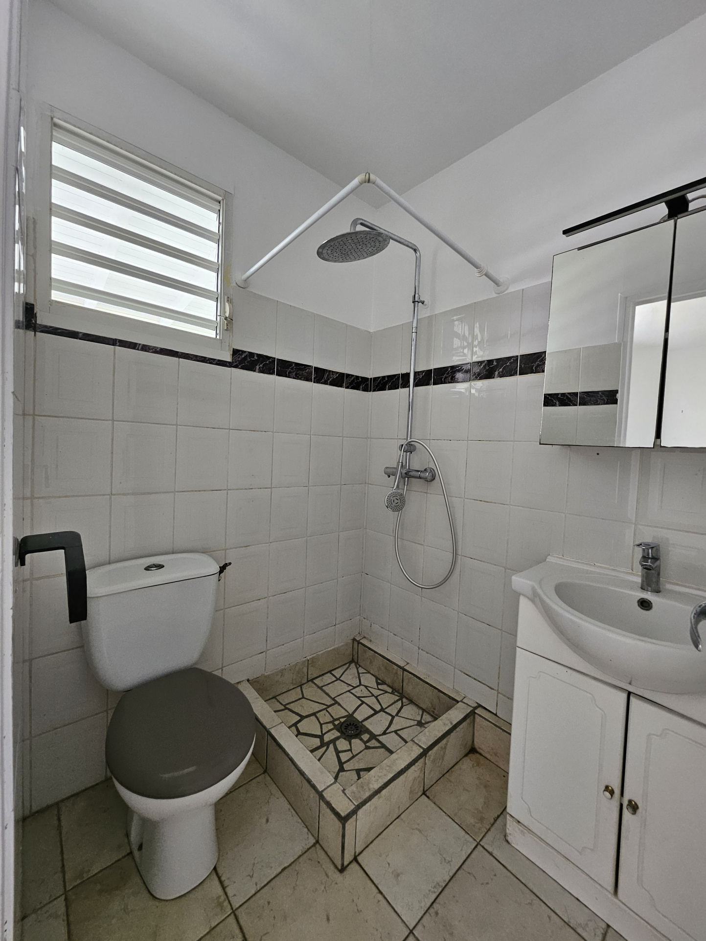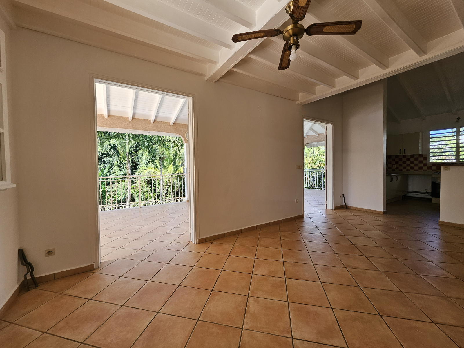 À l’étage, vous découvrirez une cuisine américaine aménagée et équipée, un séjour avec mezzanine, deux chambres climatisées, deux salles d’eau, un salon et une grande terrasse en L, apportant luminosité et ouverture vers l’extérieur.
