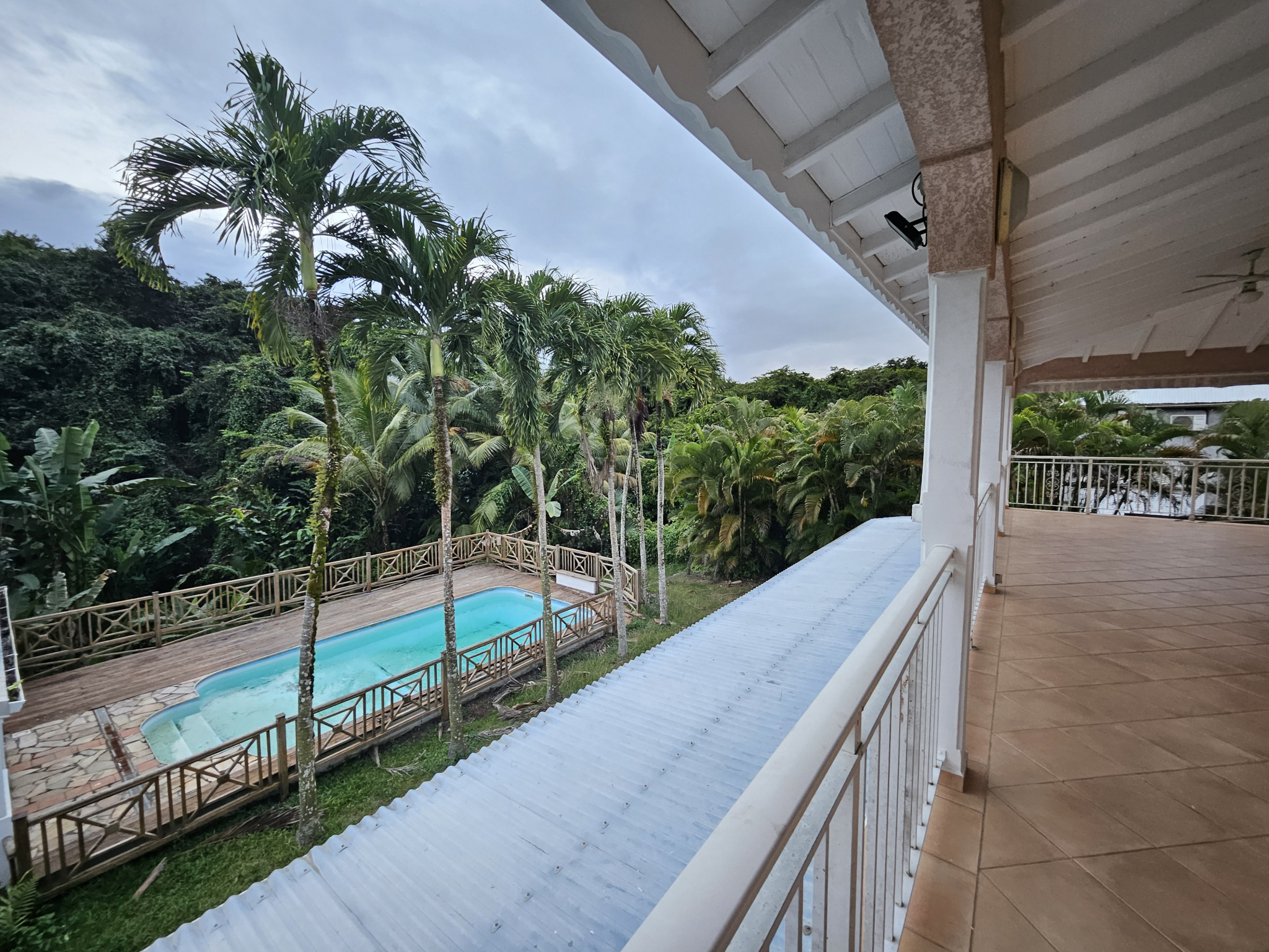 Au rez-de-chaussée, la maison comprend un bureau climatisé, trois chambres climatisées, deux salles d’eau, un WC indépendant, ainsi qu’un espace piscine avec carbet et cuisine extérieure, idéal pour les moments de convivialité. Une chambre indépendante complète ce niveau, offrant un espace autonome.